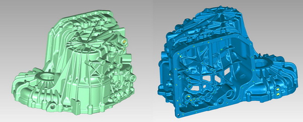 變速箱殼體的加工質量直接影響變速箱內部部件的精度、性能和壽命。因此,汽車變速箱殼體的質量把控對汽車的性能、質量與安全尤為重要。然而,汽車變速箱蓋外表輪廓結構極為復雜,凹凸曲面非常多,傳統的檢測方式工作量非常大、耗時且不精準。三維掃描儀的出現顛覆了變速箱殼體檢測過程,大大提升了變速箱殼體檢測的效率。